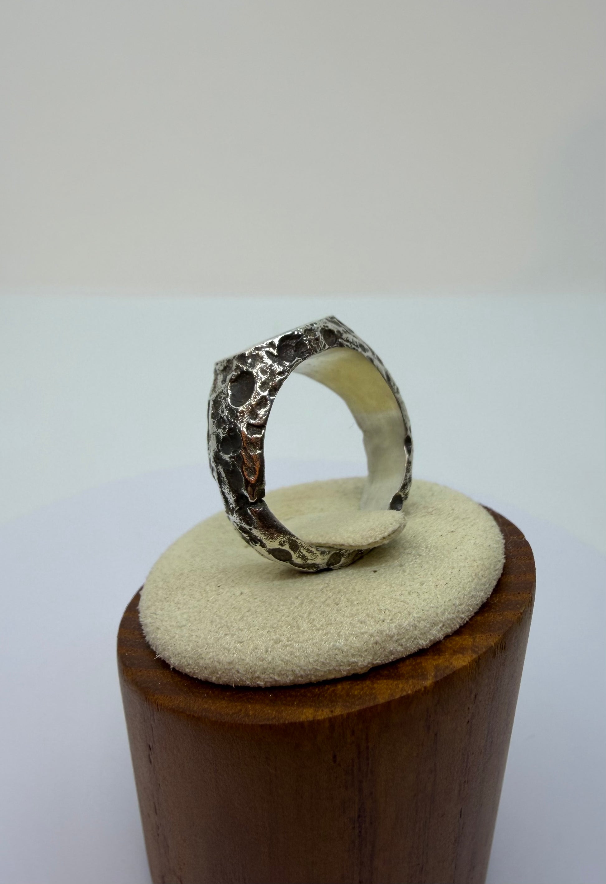 Jeder Ring ist ein Unikat und wird in aufwendiger Handarbeit gefertigt, sodass jedes Stück eine individuelle und unverwechselbare Textur erhält.
