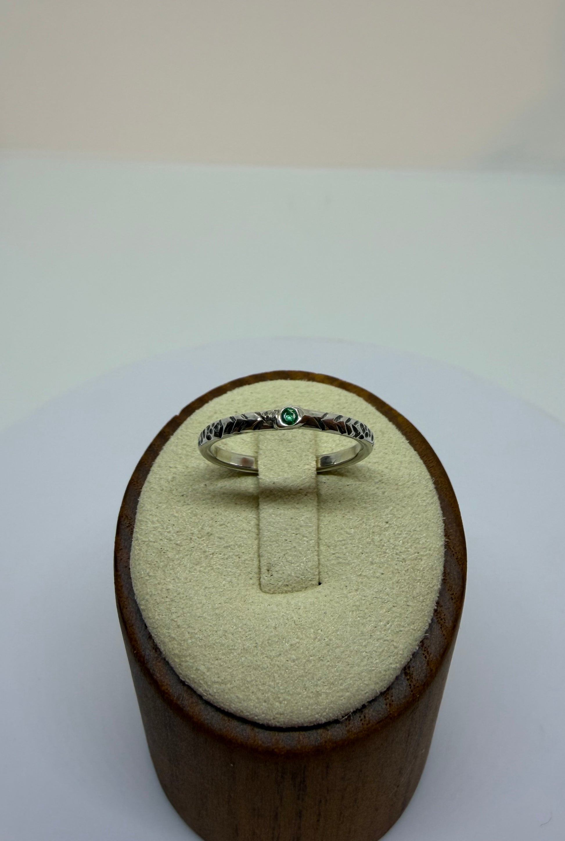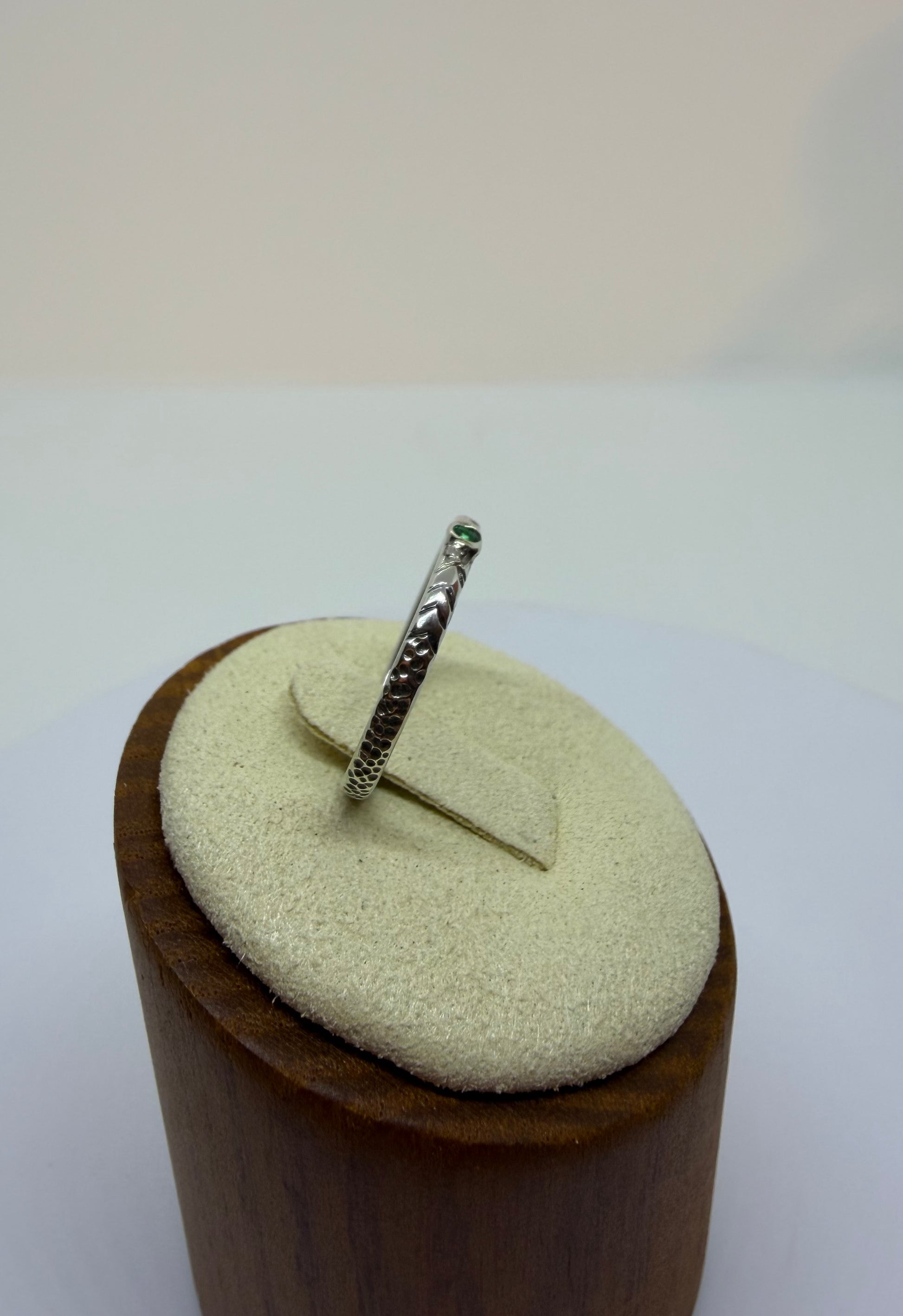Handgeschmiedeter Silberring mit 1,8 mm Smaragd – “Celestial Green”