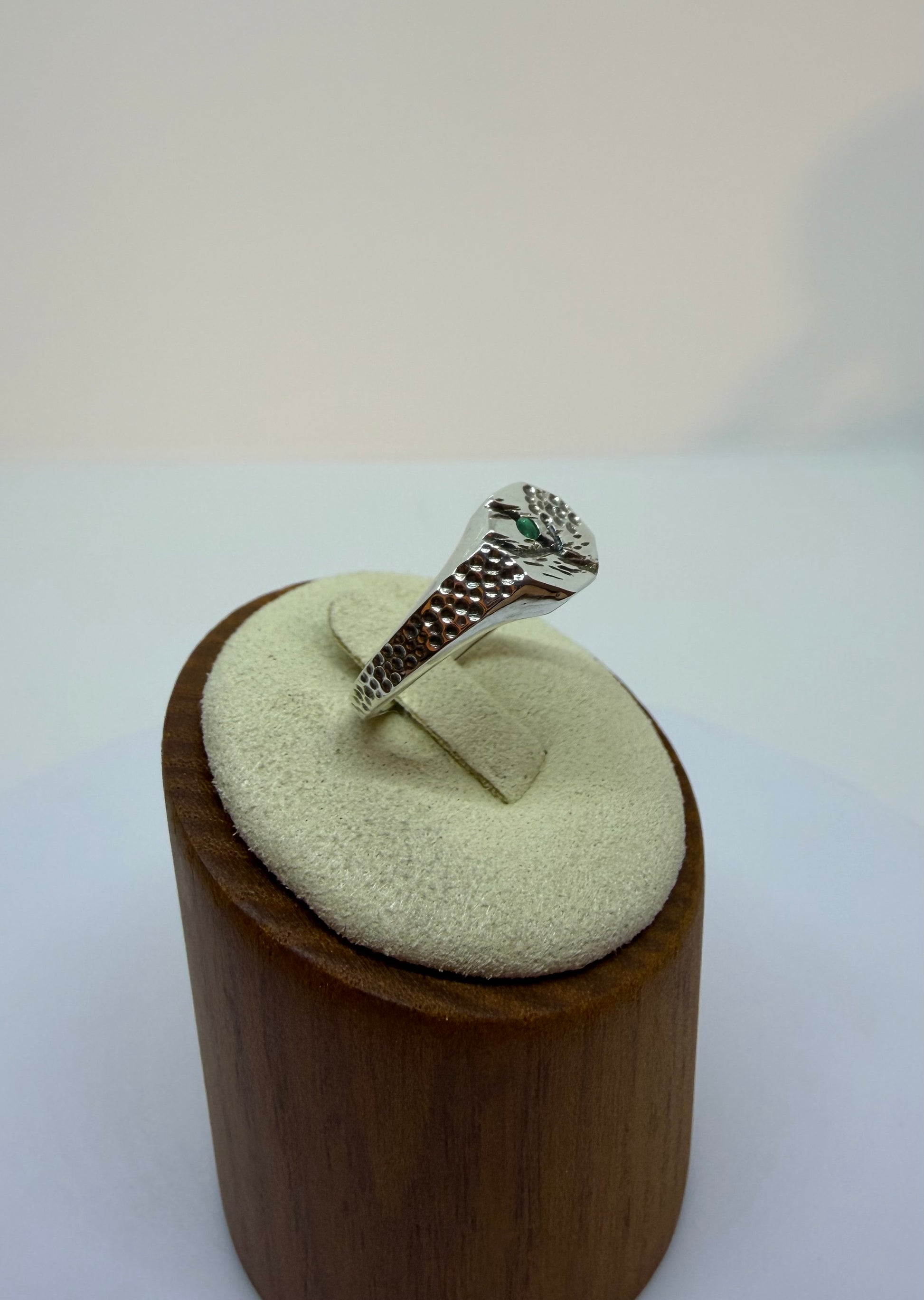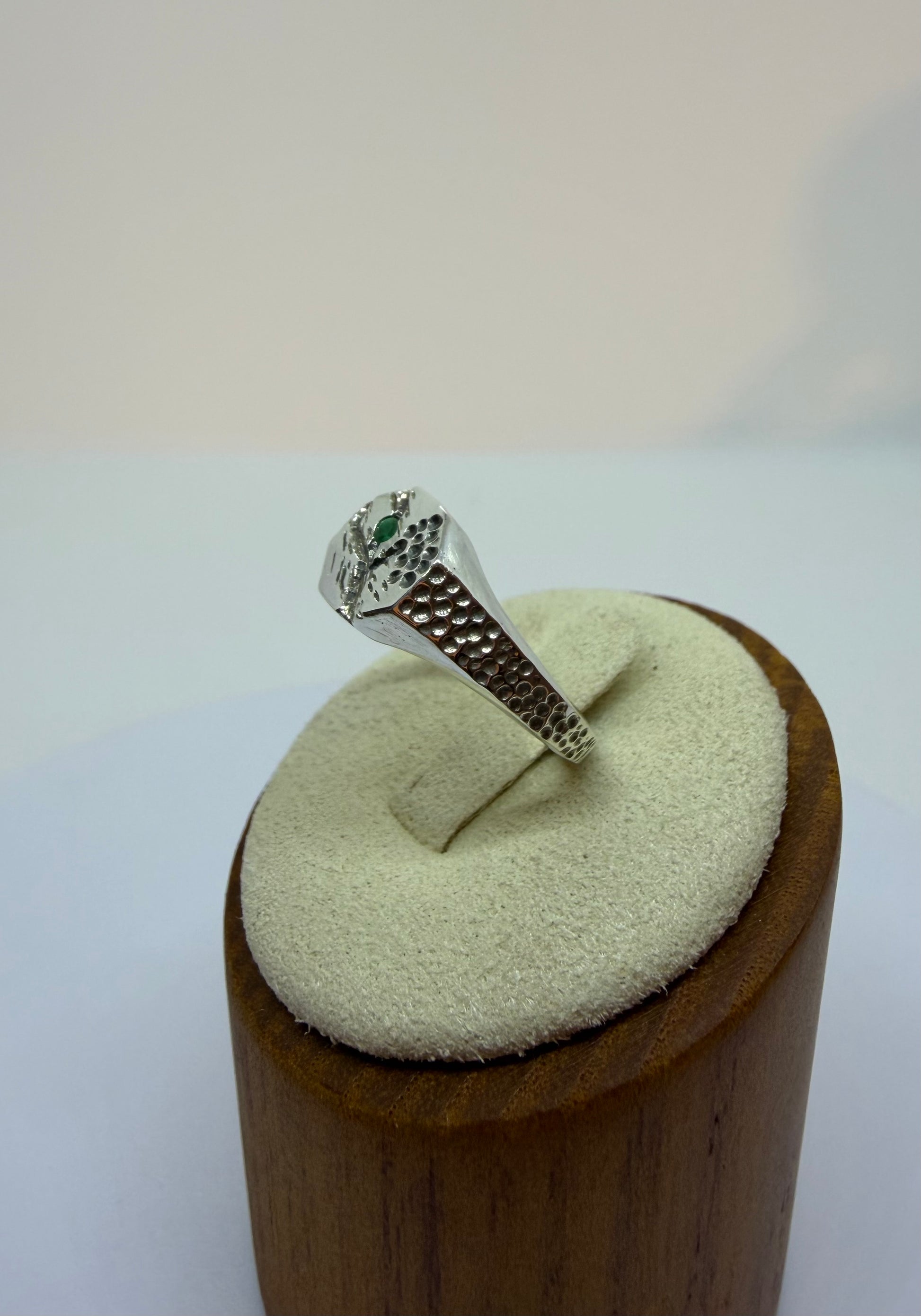 Handgeschmiedeter Silberring mit Smaragd – Futuristisches Design mit einem Hauch von Luxus