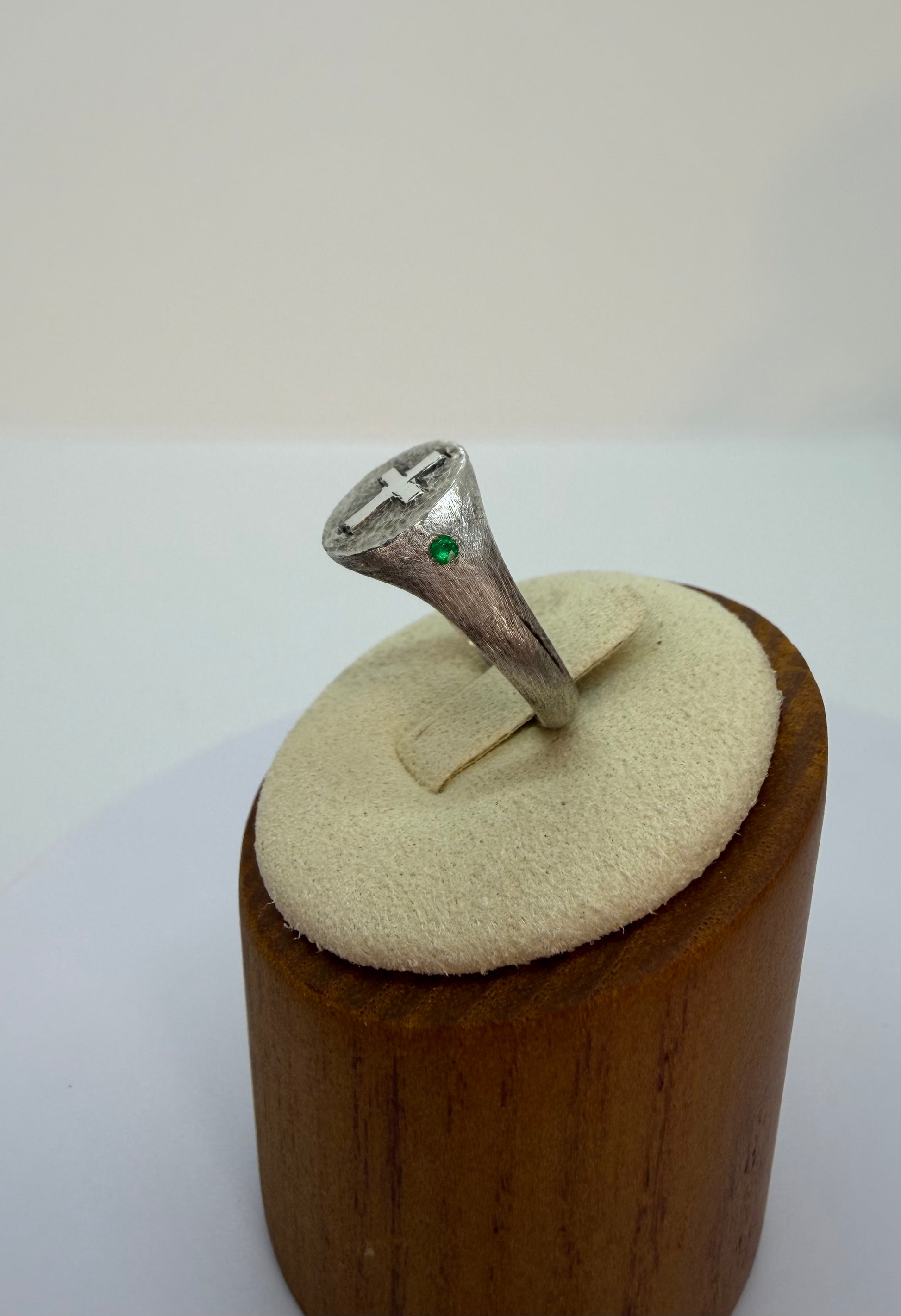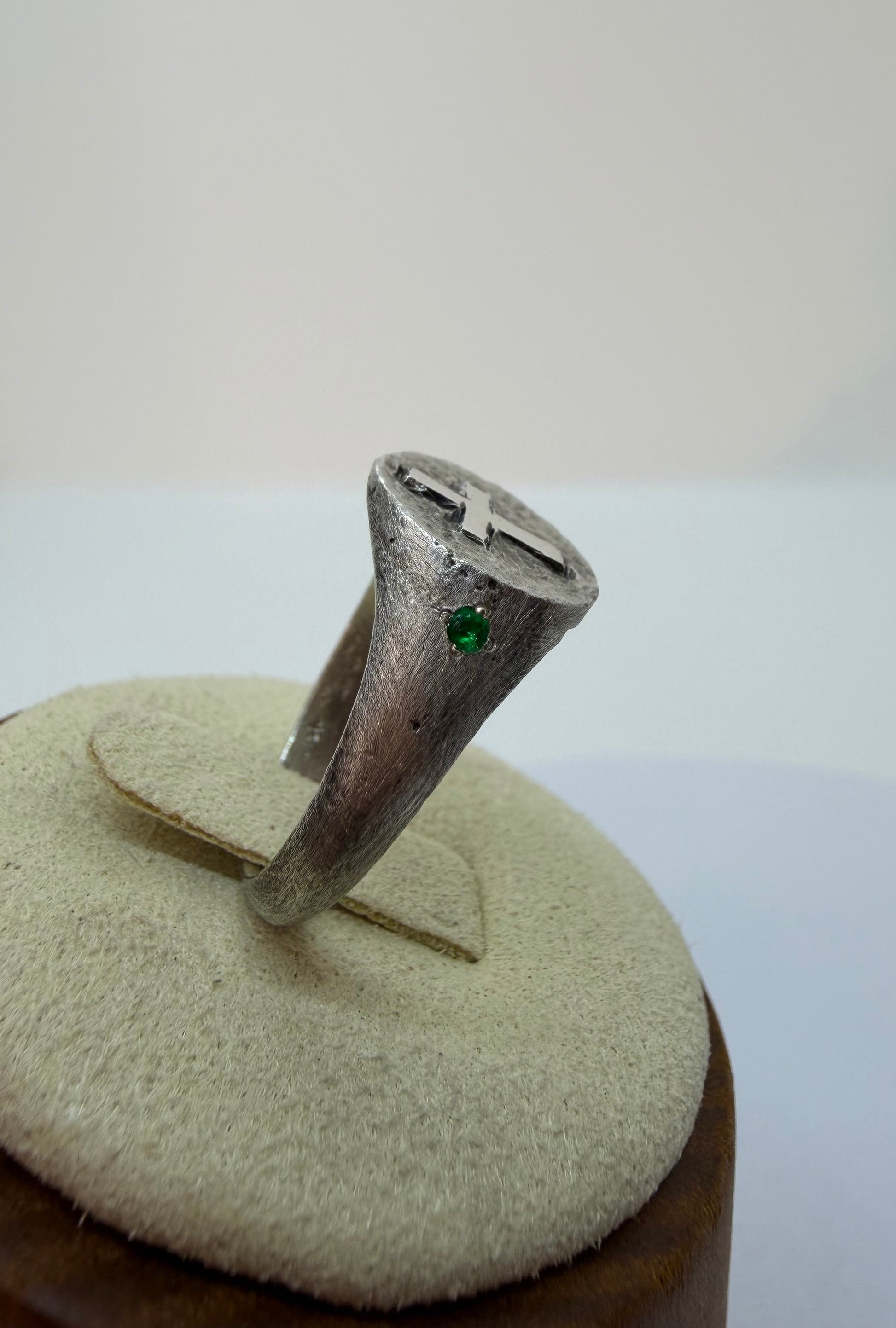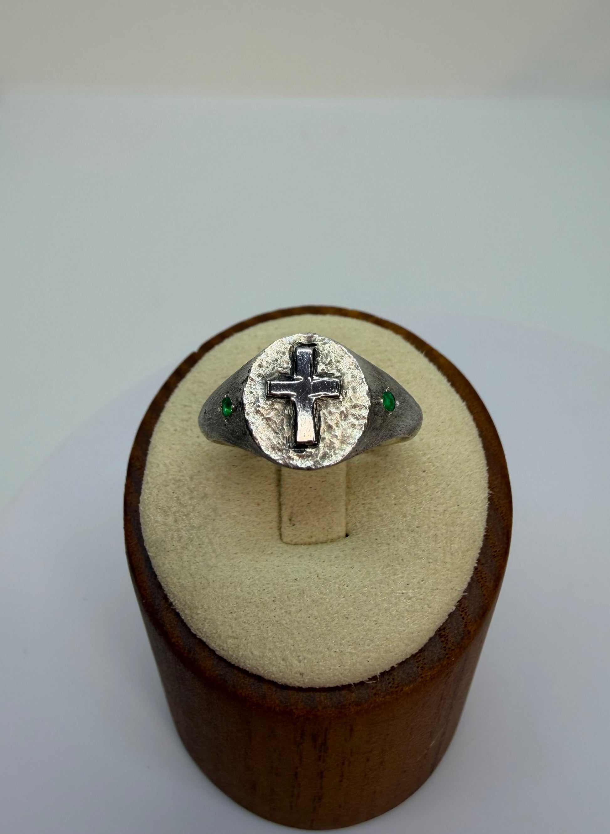 Silberring mit Kreuzsymbol & Smaragden – „Divine Impact“